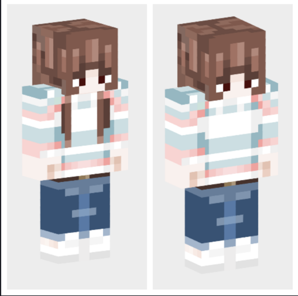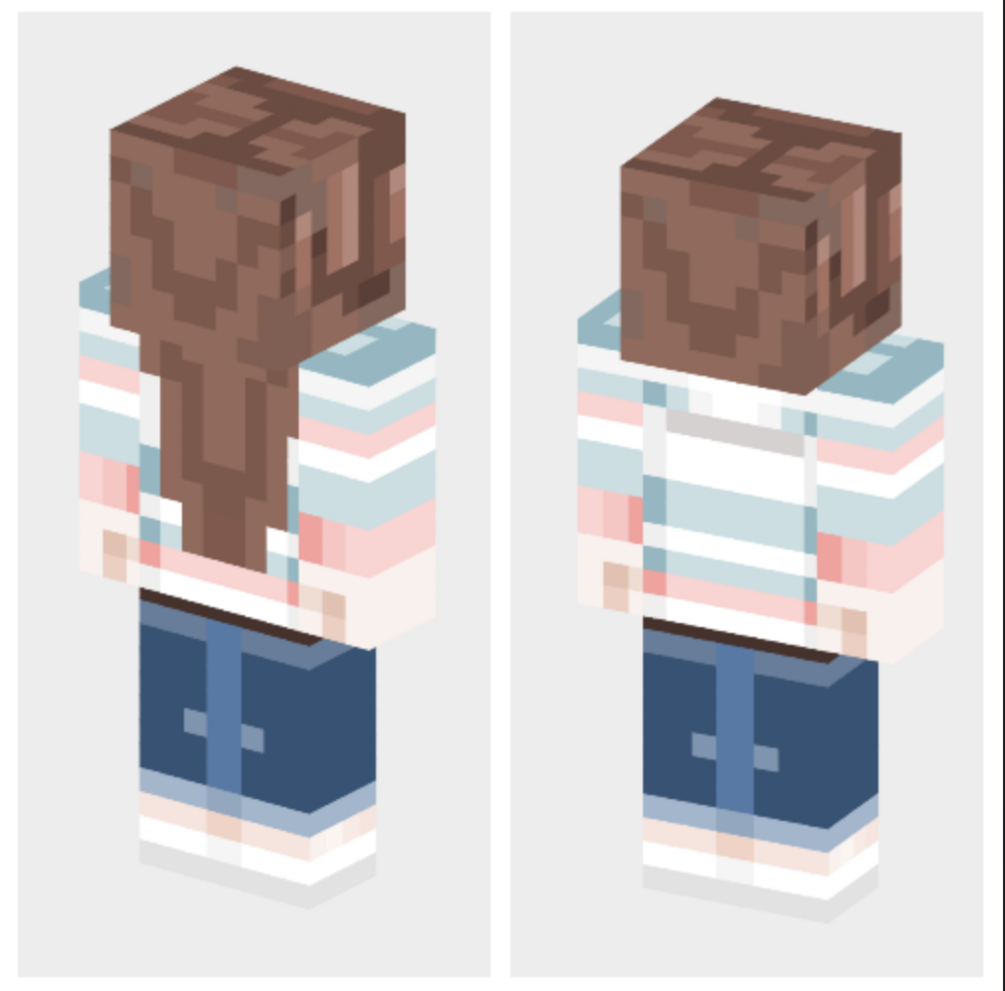 This is a full body skin pack with 2 versions of the skins in celebration of Pride. The sweater on the skins is heavily inspired by the Trans flag and a shirt I found on Romwe (Striped Drop Shoulder Crop Polo Shirt). This skin is for a slim model (3 pixels). There's a lot of detail put into it and normally I would charge for this pack but in honor of Pride I want everyone to be able to play with the skins free of charge. If you really like these skins and wish to support me $7 or more would be appreciated.